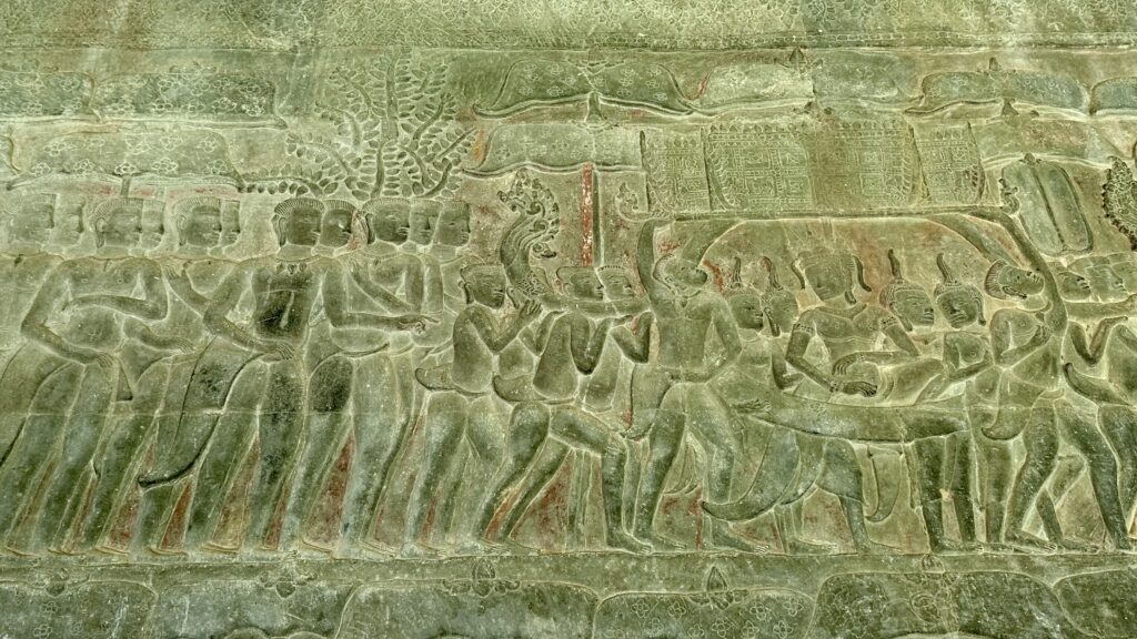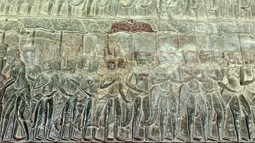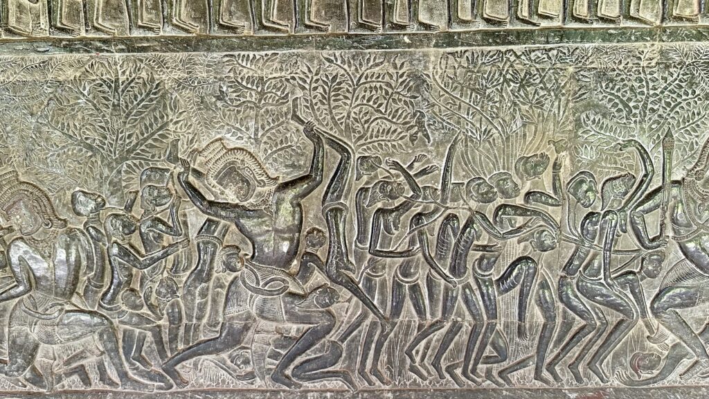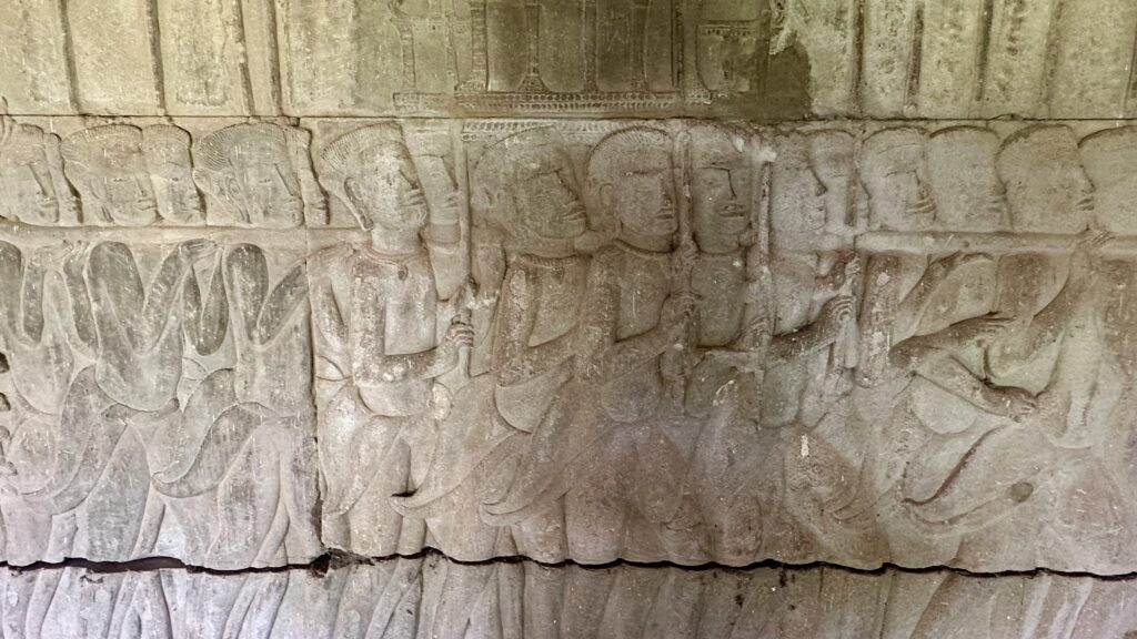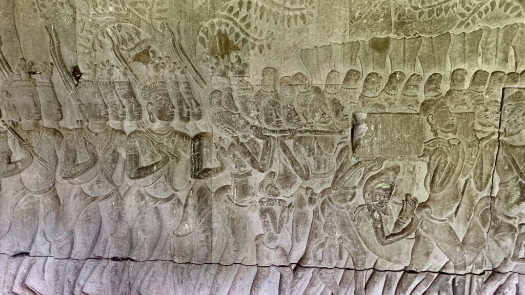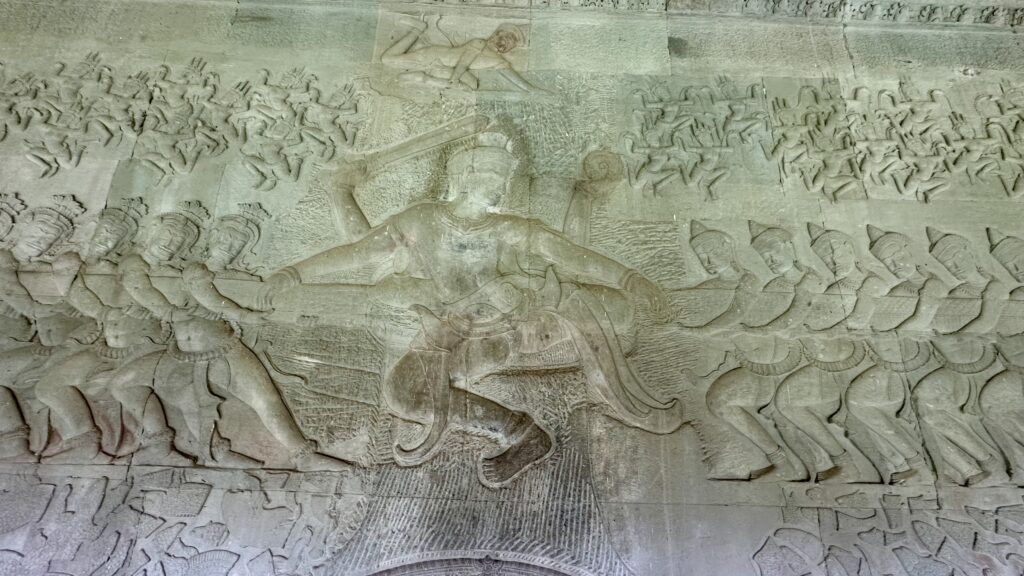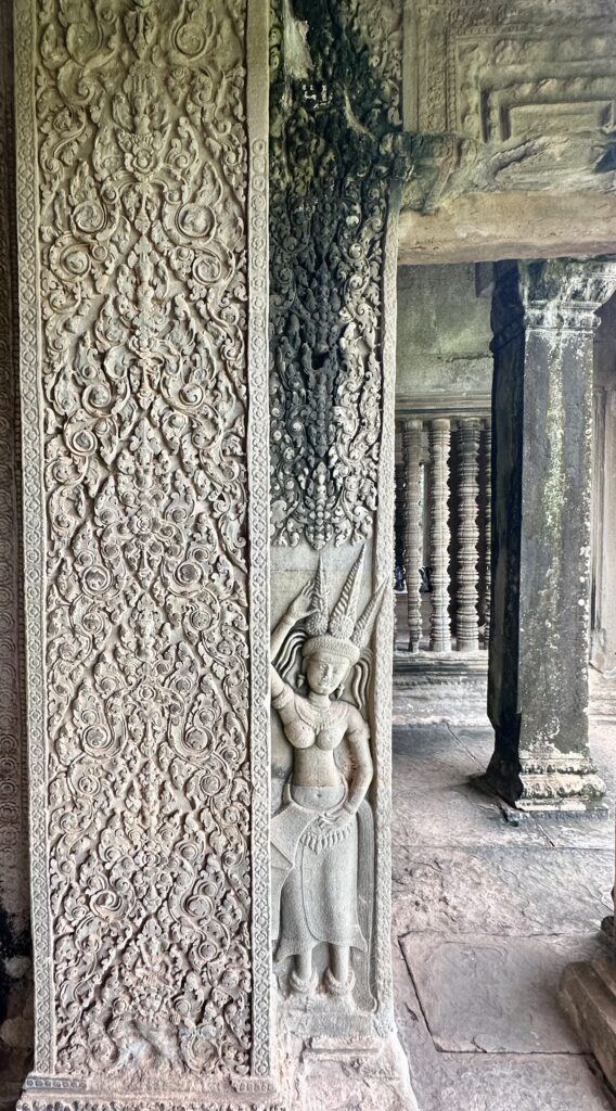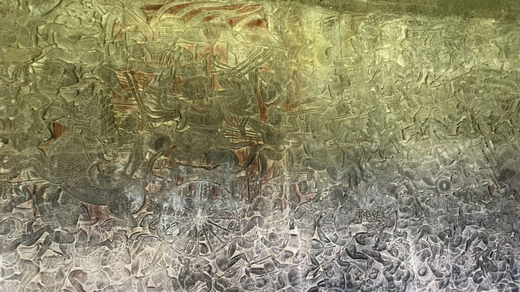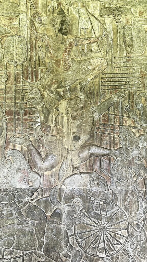 Angkor Wat – We had been planning, researching, and looking forward to visiting this place for the last couple of years. However, no amount of reading or looking at pictures can prepare you for the in-person experience of this incredible temple complex. The extensive and intricately detailed bas-relief carvings—depicting Hindu epics such as the Ramayana, Mahabharata, the Churning of the Sea of Milk, and other historical scenes that cover vast areas of the temple, are truly breathtaking and offer a profound appreciation for the artistry of ancient Khmer craftsmanship.