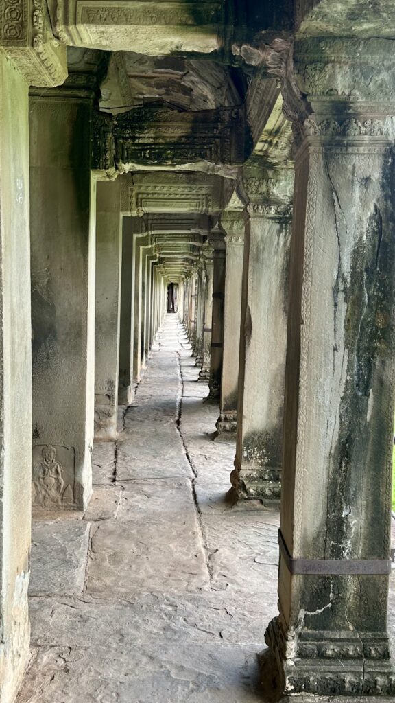 Angkor Wat, Corridors and Columns – The corridors at Angkor Wat are long covered passageways with square pillars, decorated roofs and intricate carvings.