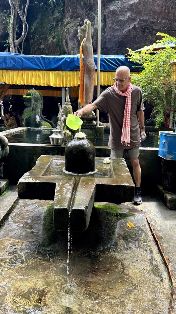 Kulen Mountain, River of 1000 Lingas – our next stop was the nearby River of 1000 Lingas. The Lingams are carved onto a riverbed and will be clearly visible during the dry season when there is not much flow of water. Since we went during the rainy season, the lingams were not clearly visible. They have carved more than 1000 lingams of various sizes on the rocky river bottom. There is also, a carving of Hindu god Vishnu in a happy sleeping position (or Anandha Sayanam) which we couldn’t see .