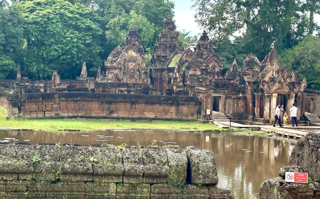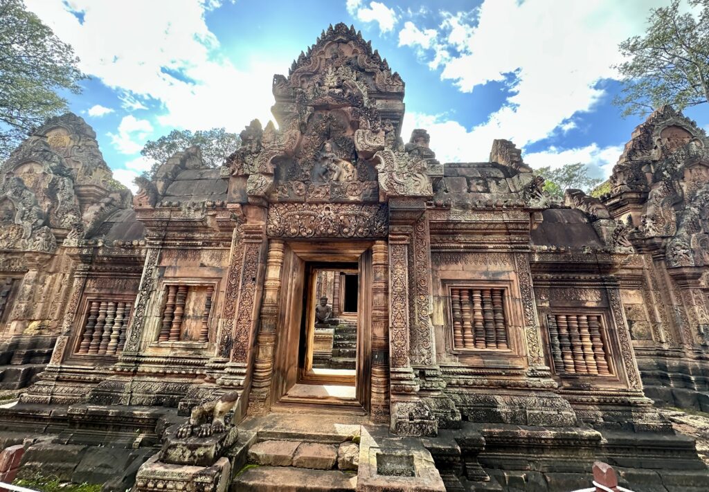 Banteay Srei – located 35km north of Siem reap, this 10th century temple is dedicated to Hindu gods Shiva and Parvati. The temple’s modern name, Banteay Srei – citadel of the women, or citadel of beauty, is probably related to the intricacy of the bas relief carvings found on the walls and the tiny dimensions of the buildings themselves. Banteay Srei is built largely of red sandstone, a medium that lends itself to the elaborate decorative wall carvings which are still observable today.